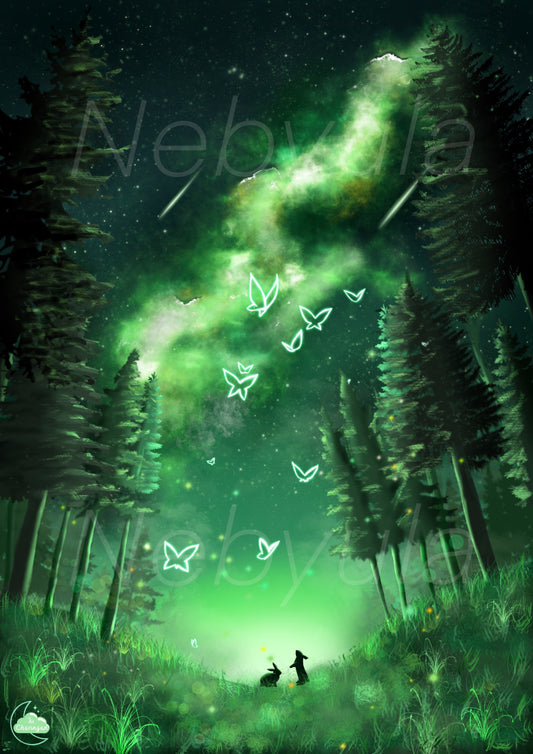 Affiche fantaisie Forêt enchantée sous les étoiles - Art numérique