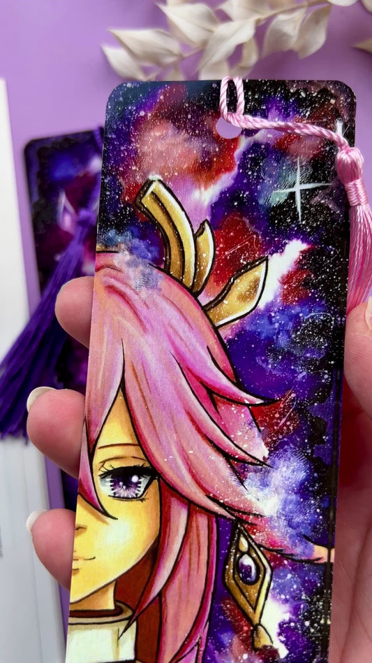 Grande collection de marque-pages manga dessinés à la main à l'aquarelle avec un style galactique coloré. Découvrez une variété de duos de personnages d'animés japonais au style unique pour embellir vos lectures.