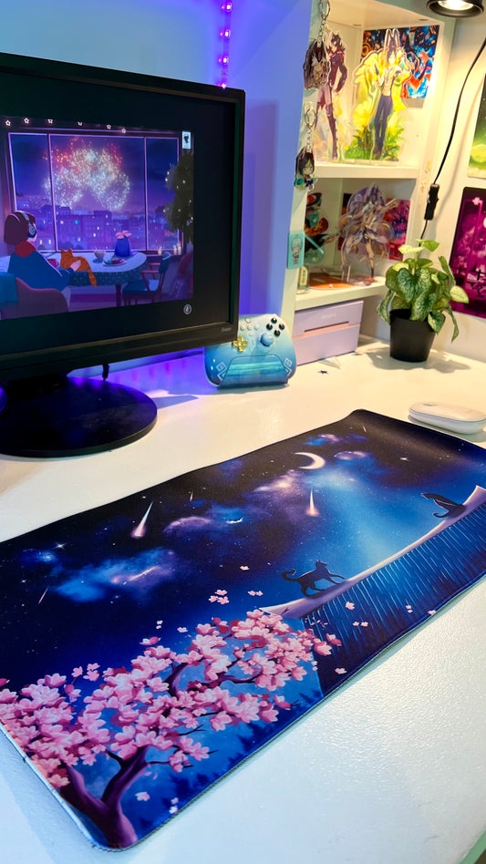 Grands tapis de souris issus d'illustrations horizontales sur les thèmes du japon et de la fantaisie.