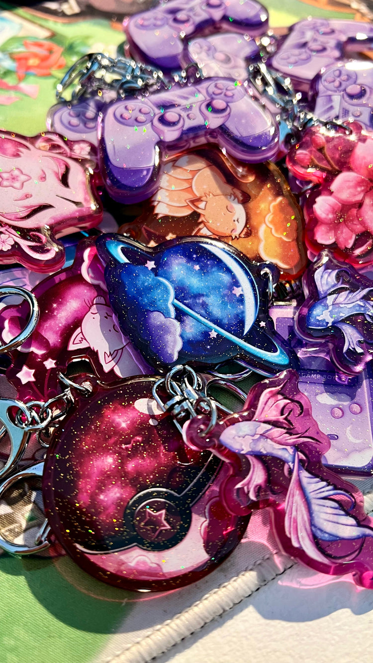 Porte-clefs en acrylique issus de mes dessins faits à l'aquarelle. Finition résine époxy, accroche facile et pratique, petit bijoux pendentif. Porte-clef manga fait main, Porte clefs Genshin Impact