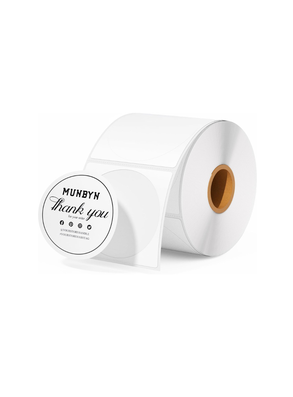 Etiquettes autocollantes rondes à personnaliser avec l'application Munbyn. Utilisation Idéale pour logos, tarifs ou remerciements. S'utilise avec l'imprimante thermique Munbyn.