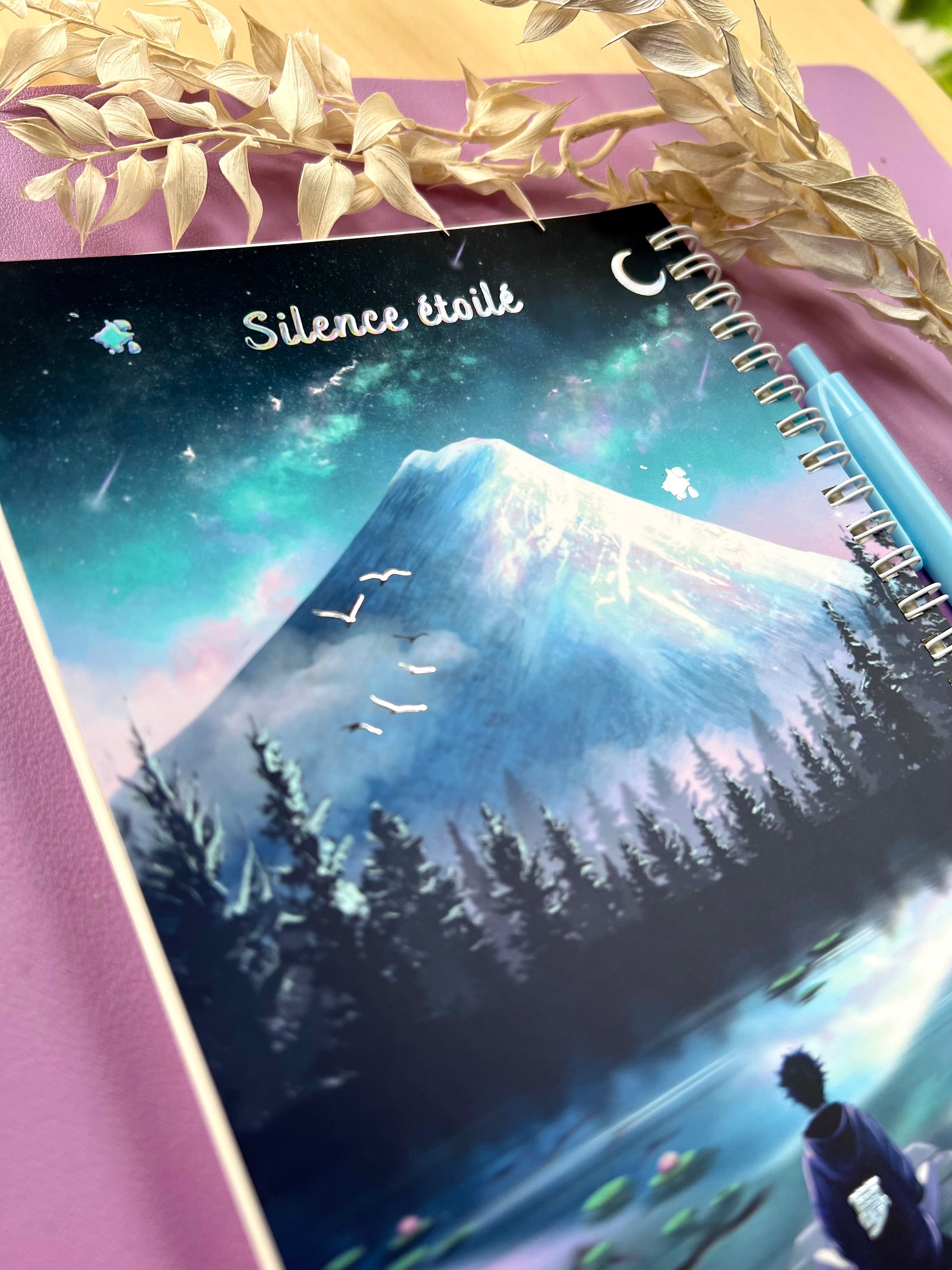 📄 Couvertures recto et verso douces et effets holographiques. Papier intérieur blanc à ligne. 100 pages